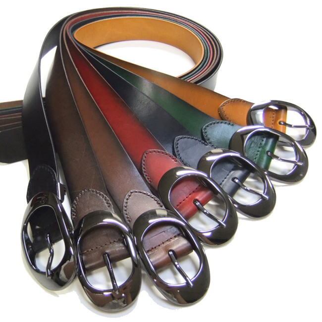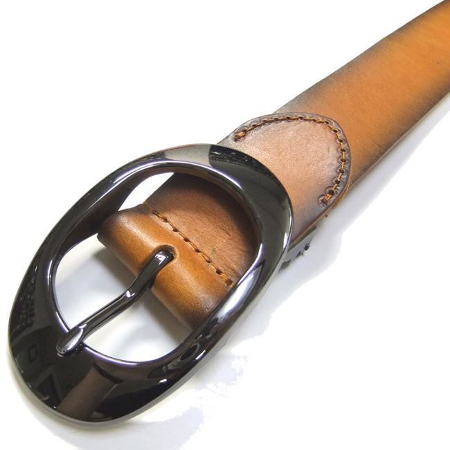 イエロー 084 グラデーション オーバル ブラックニッケル 本革 牛革 ベルト