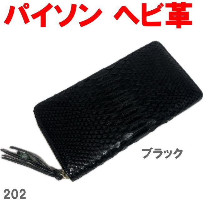 ブラック 202 ヘビ革 パイソン 長財布 ラウンド メンズ レディース