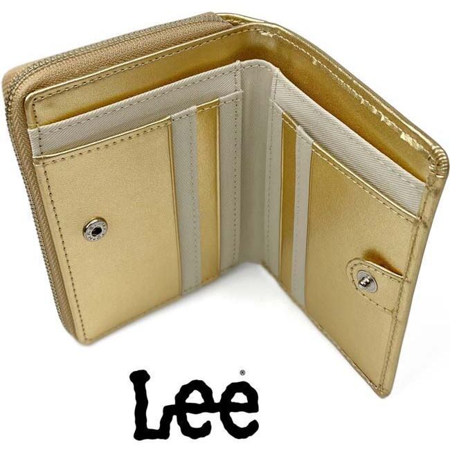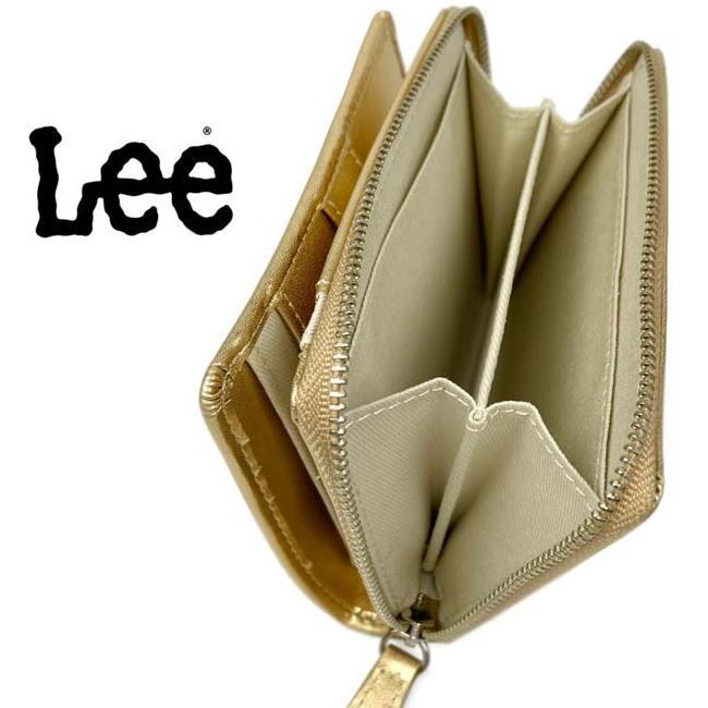 シルバー Lee リー リアルレザー メダルカラー 折財布 ラウンド 本革 0520266n