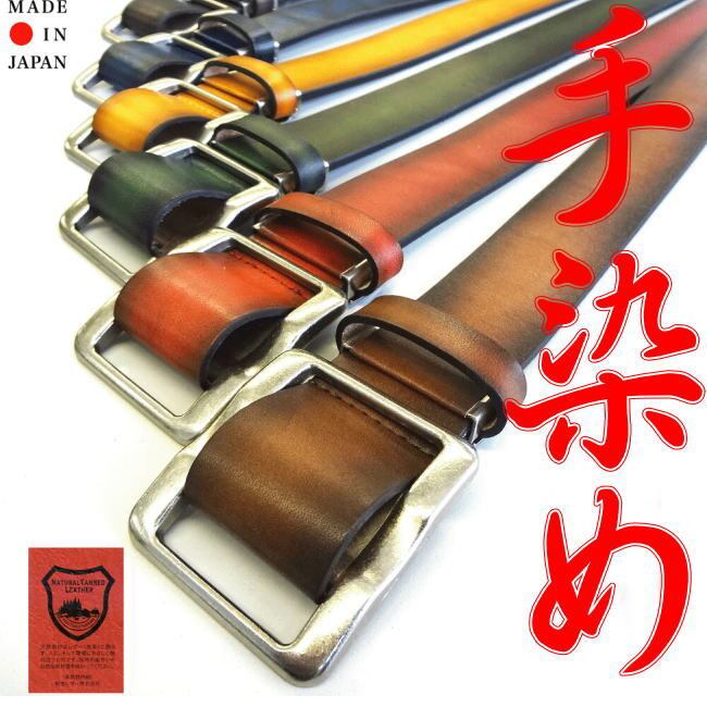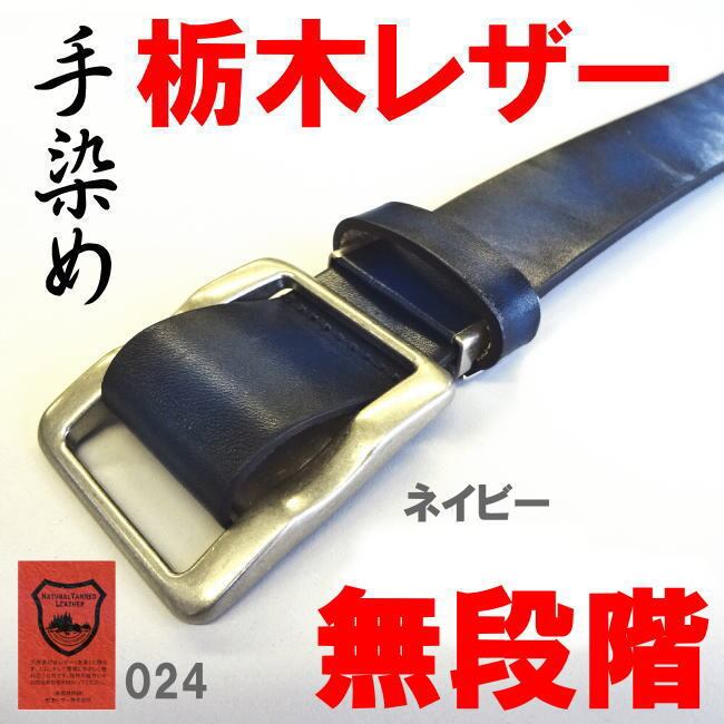 ネイビー 栃木レザー 日本製 手染め 無段階 穴無し スライド 024KW ベルト