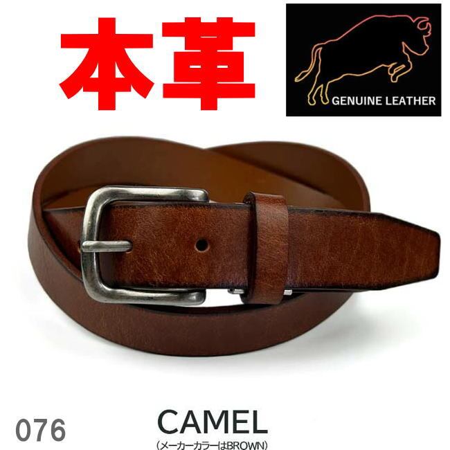 キャメル ジェニュインレザー 本革 プレーンデザイン ベルト 3cm 076