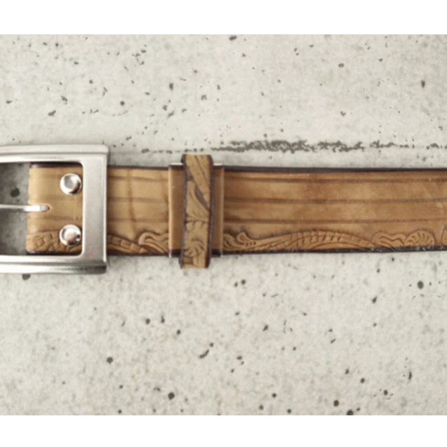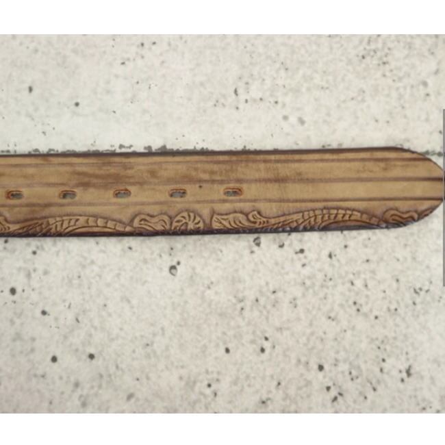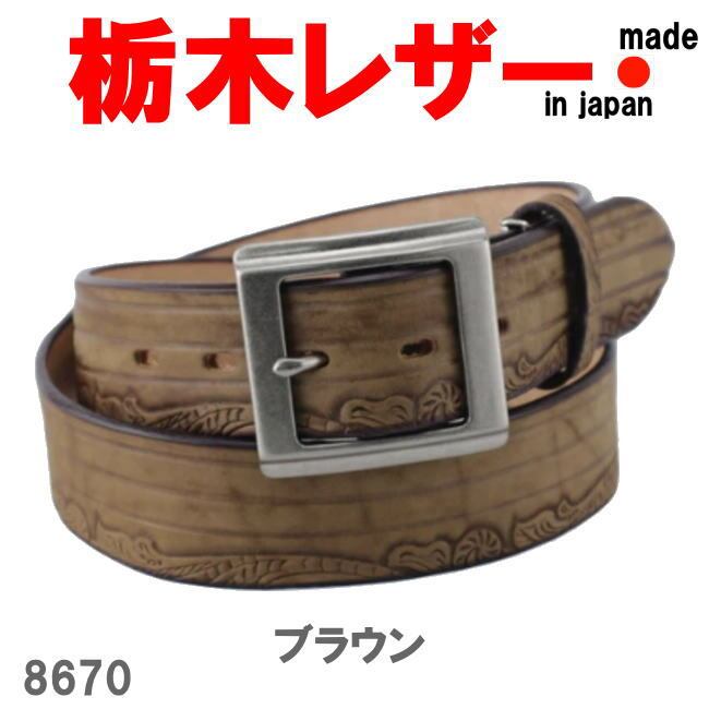 ブラウン 栃木レザー ムラ染め サイドカービング 型押し 8670 牛革 ベルト 日本製