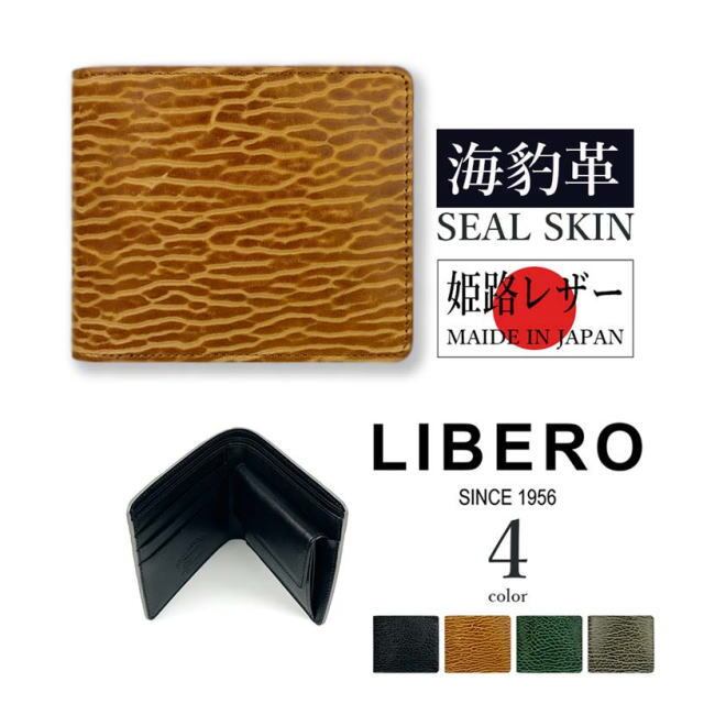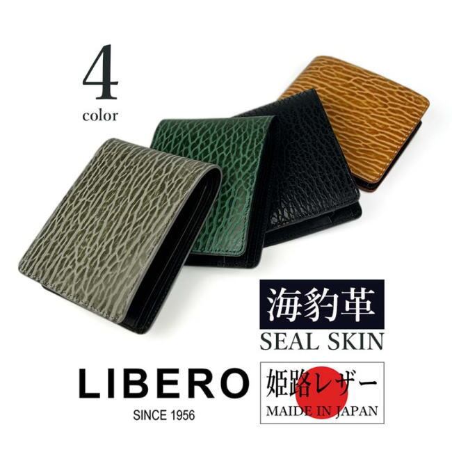 ブラック リベロ 日本製 高級 アザラシ革×姫路レザー 二折財布 1401