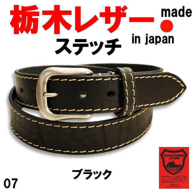ブラック 栃木レザー 1007 ステッチベルト 牛革 日本製 メンズ レディース