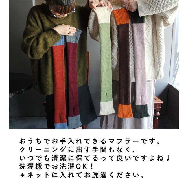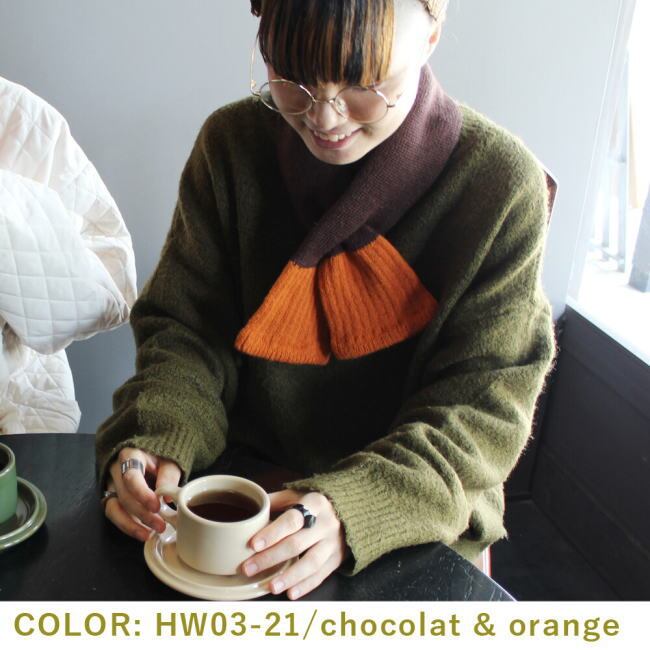 ショートマフラー 日本製 やわらかウール混のバイカラー ショコラ×オレンジ HW03-12