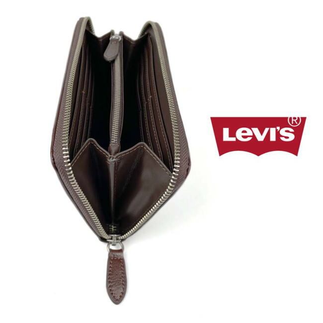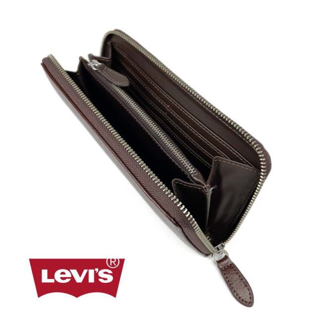 財布 リーバイス 長財布 メンズ 8203 ダークブラウン ラウンドファスナー レザーループ付