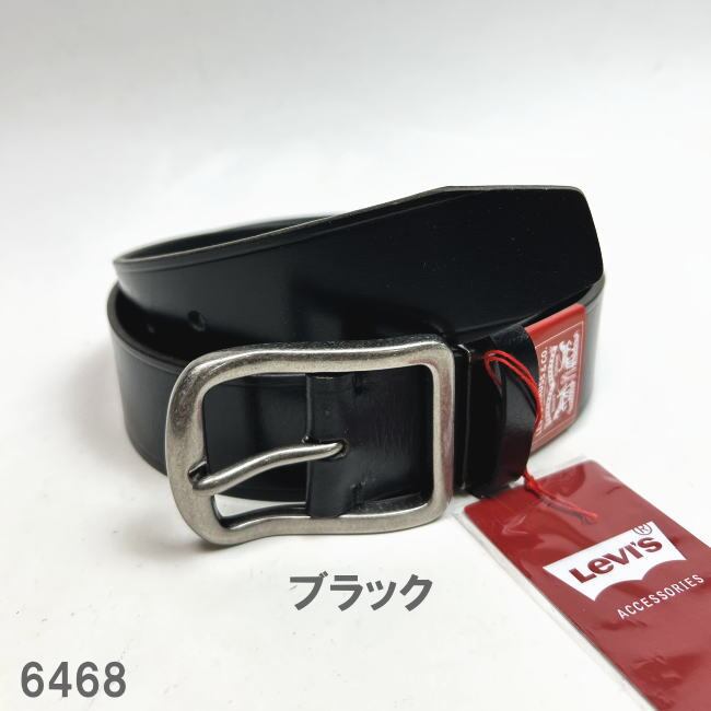 ブラック リーバイス 6468 リアルレザー 本革 牛革 プレーン ワイド ベルト