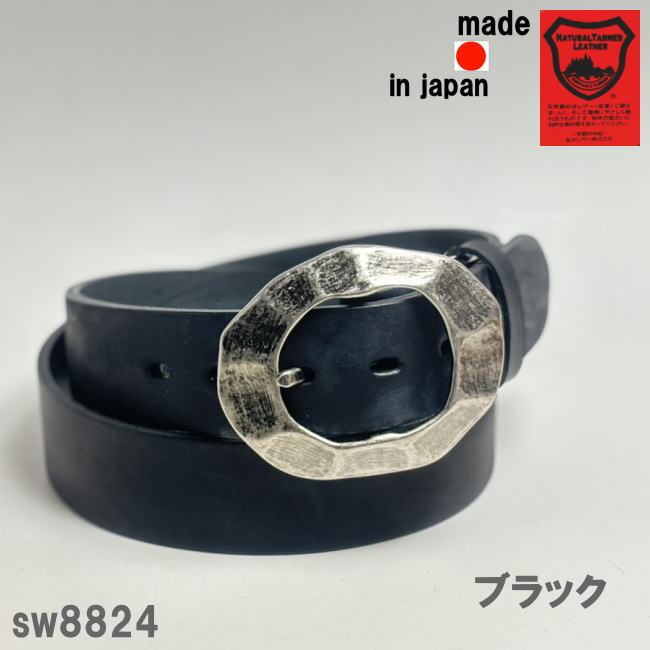 ブラック 栃木レザー ムラ染め 8824 無骨な堅牢性 牛革 ベルト 日本製