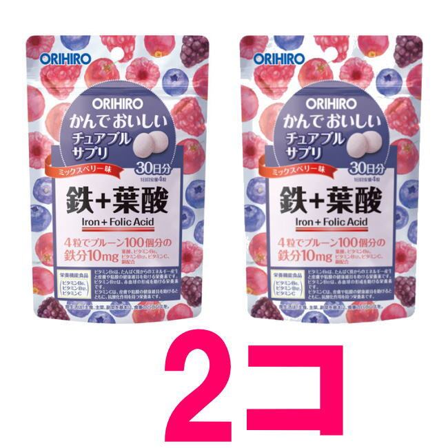 サプリ 鉄+葉酸 オリヒロ かんでおいしいチュアブルサプリ 鉄+葉酸 120粒 2袋