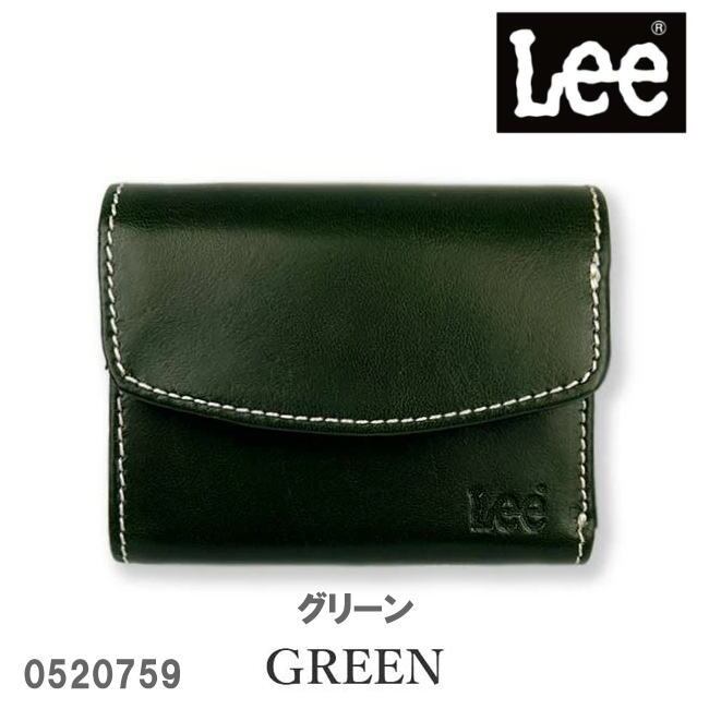グリーン Lee リー 高級イタリアンレザー 三つ折り コンパクト財布 ウォレット 0759