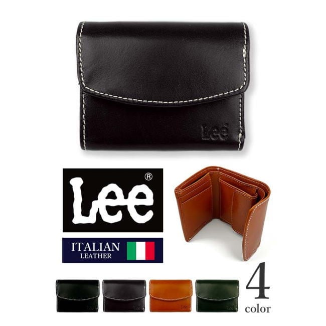 ブラック Lee リー 高級イタリアンレザー 三つ折り コンパクト財布 ウォレット 0759