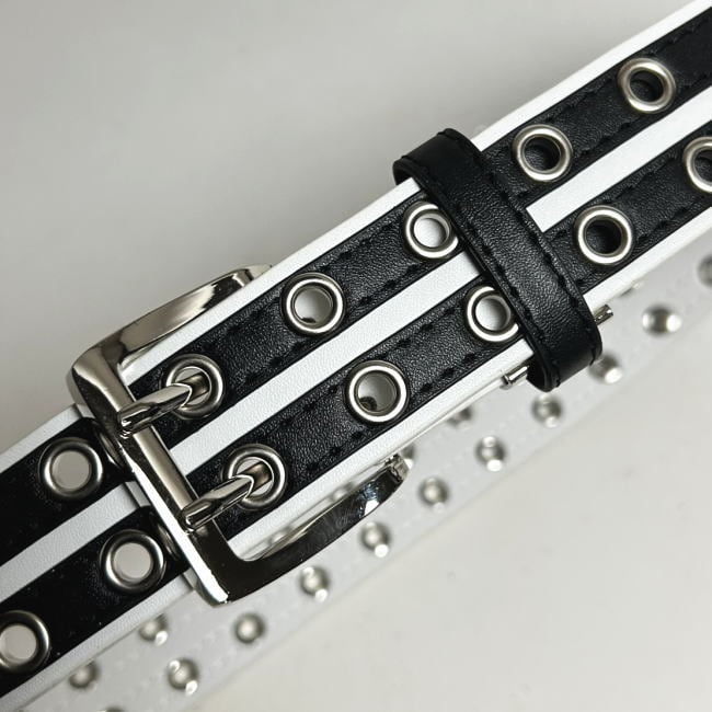 ベルト メンズ ダブルピン BO1 ホワイト 黒2ライン ゴルフに カジュアルに