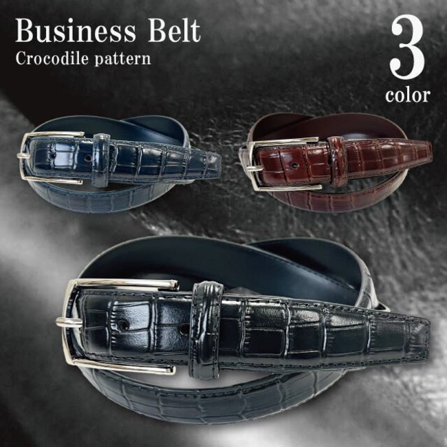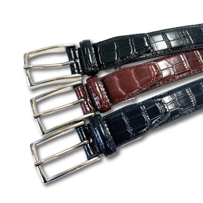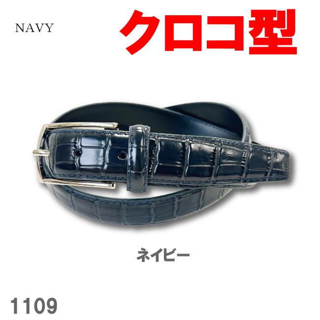 ベルト メンズ 1109 ネイビー デルマ クロコ型 ビジネスベルト 本革 合皮