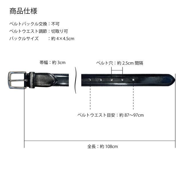 ベルト メンズ 本革 牛革 日本製 005 アドバンガラスレザー 長沢ベルト工業 ネイビー