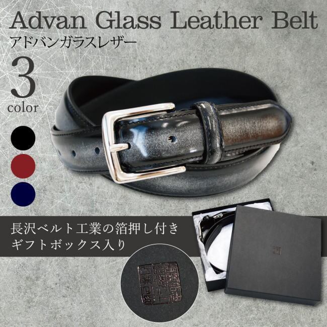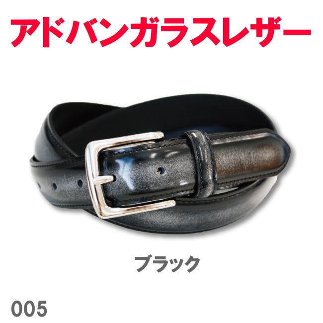 ベルト メンズ 本革 牛革 日本製 005 アドバンガラスレザー 長沢ベルト工業 ブラック
