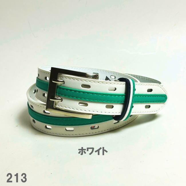 ベルト メンズ ダブルピン 213 ホワイト グリーン ゴルフに カジュアルに
