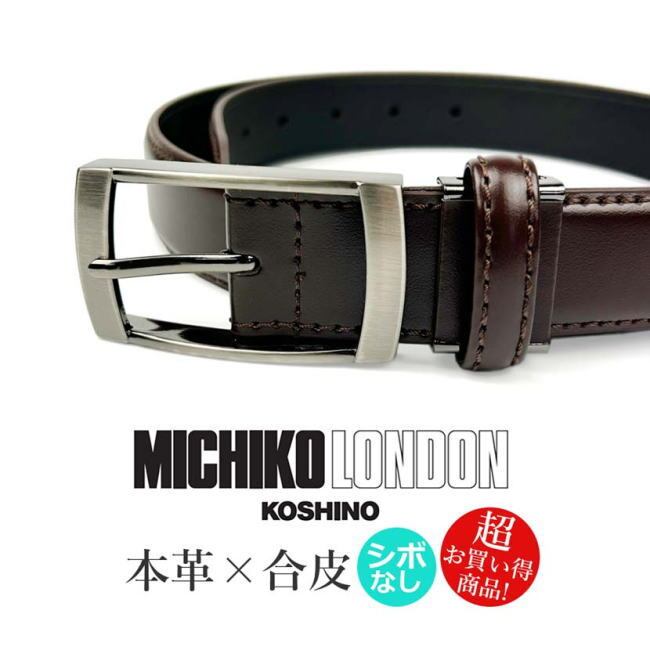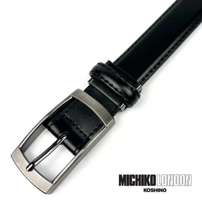 ブラック 101-2 ミチコロンドン リアルレザー デカバックル ベルト