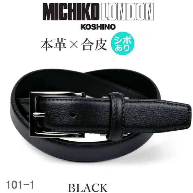 ブラック 101-1 ミチコロンドン リアルレザー ピンバックル ベルト