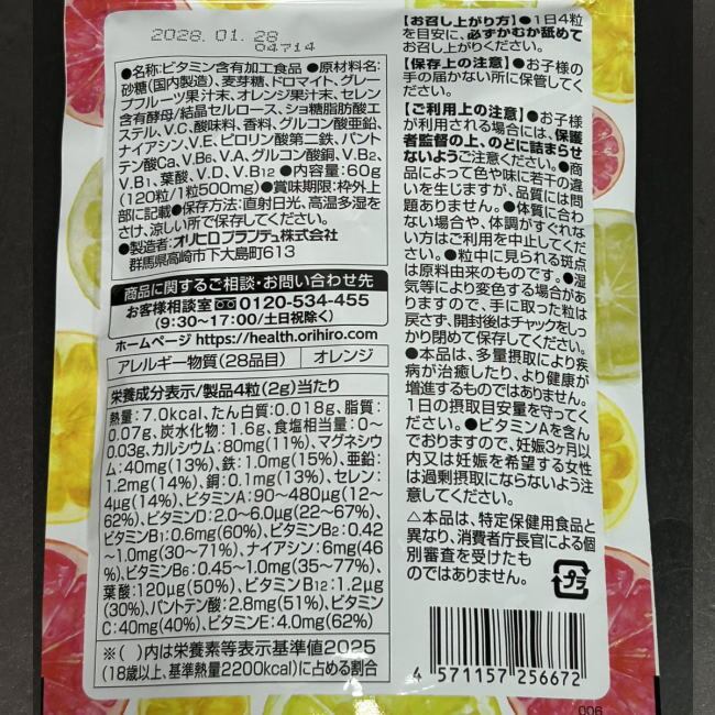 チュアブル製品です。1日目安量4粒中で約1/2日分の