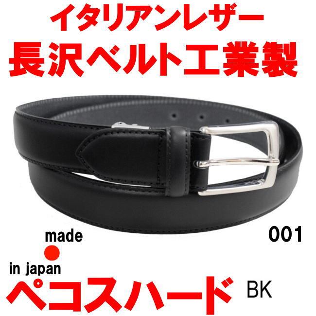 ブラック 長沢ベルト工業製 イタリアレザー 001 ペコスハード ビジネス ベルト 日本製