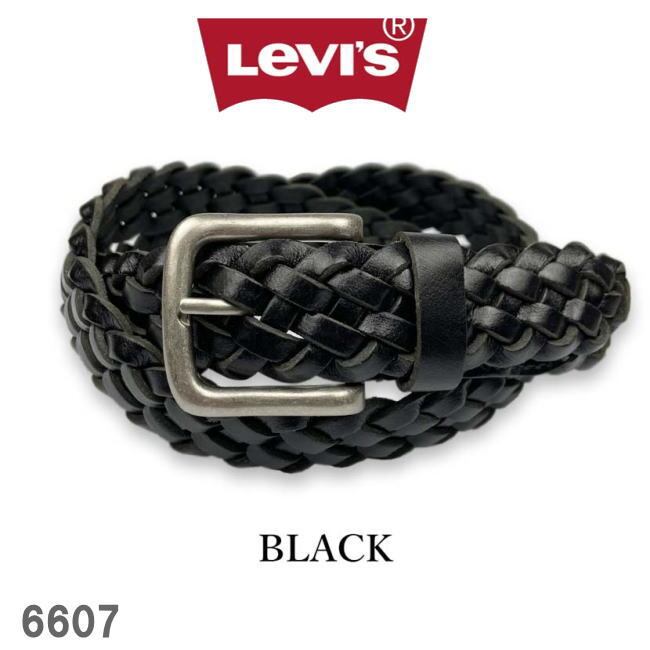ベルト 穴なし メンズ 6607 リーバイス ブラック 本革 牛革 メッシュ 編み込み
