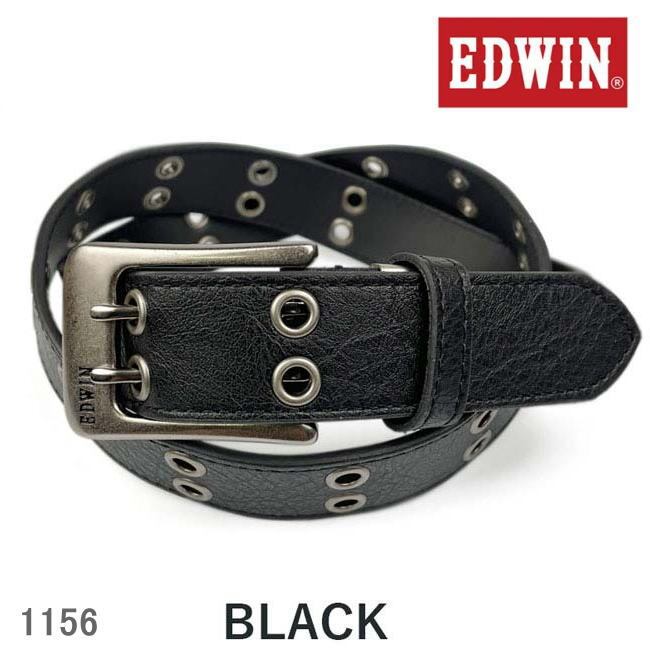 ブラック EDWIN エドウイン ダブルピン ベルト ロングサイズ PUレザー 1156