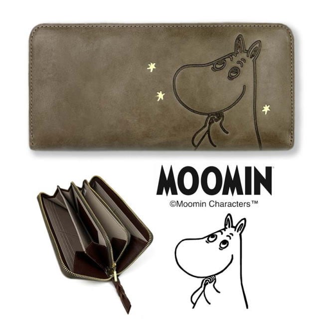 ムーミンの型押しにキラキラの星柄のデザインが施された可愛らしいロングウォレット!