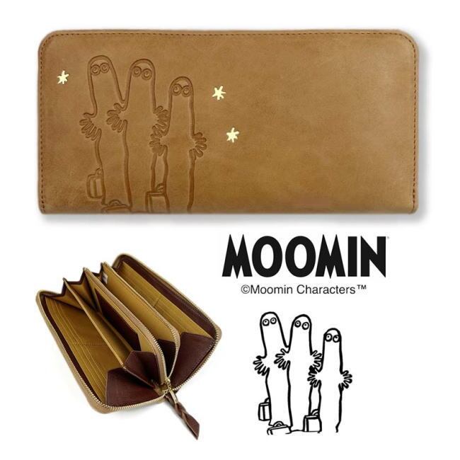 ニョロニョロ&キラキラ星柄 本革 牛革 リアルレザー ラウンド 長財布 バイカラー ムーミン メンズ レディース