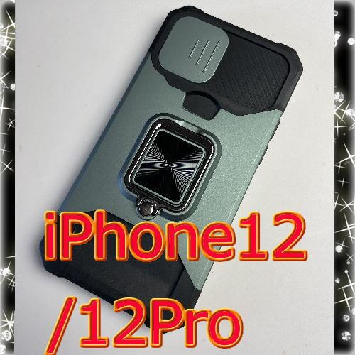 グリーン iPhone12/12Pro ケース カメラカバー バンパーデザイン