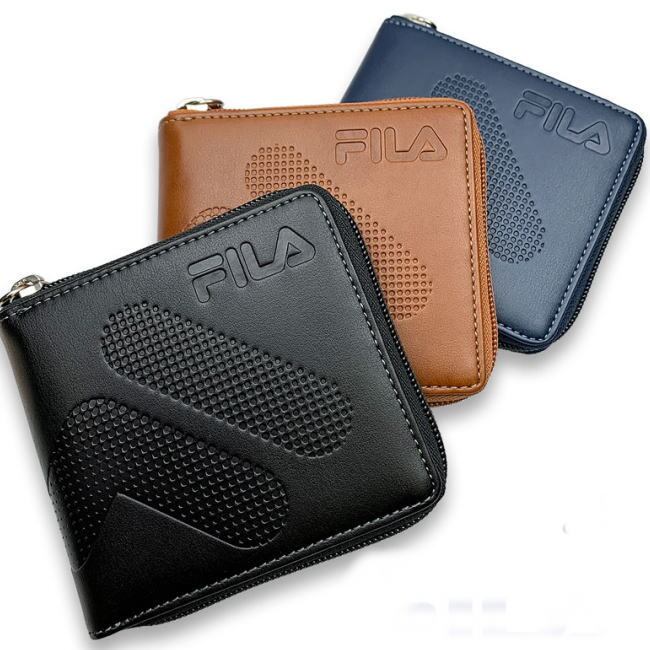 ブラウン 茶 FILA フィラ ドットロゴ ラウンドファスナー 折財布 52