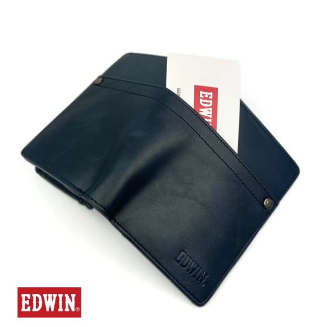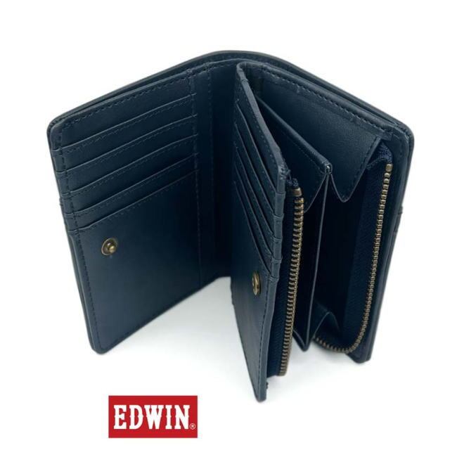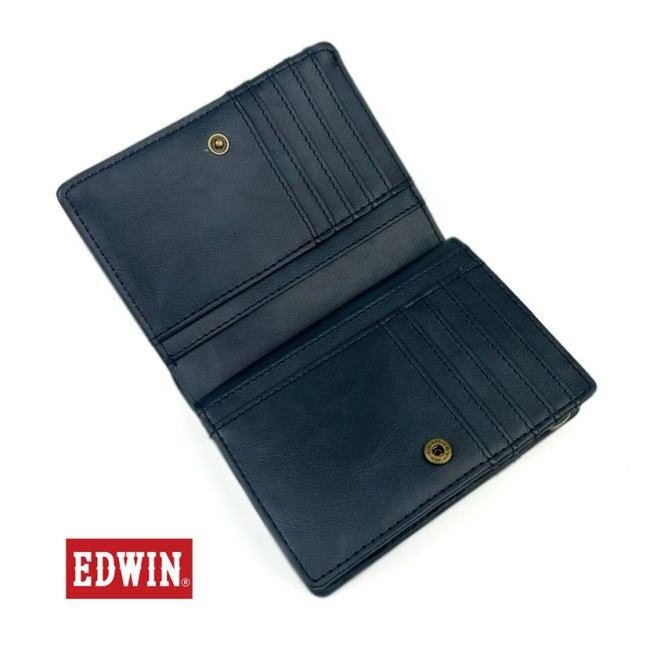 ネイビー EDWIN エドウイン 折財布 633 リベットデザイン L字ファスナー小銭入