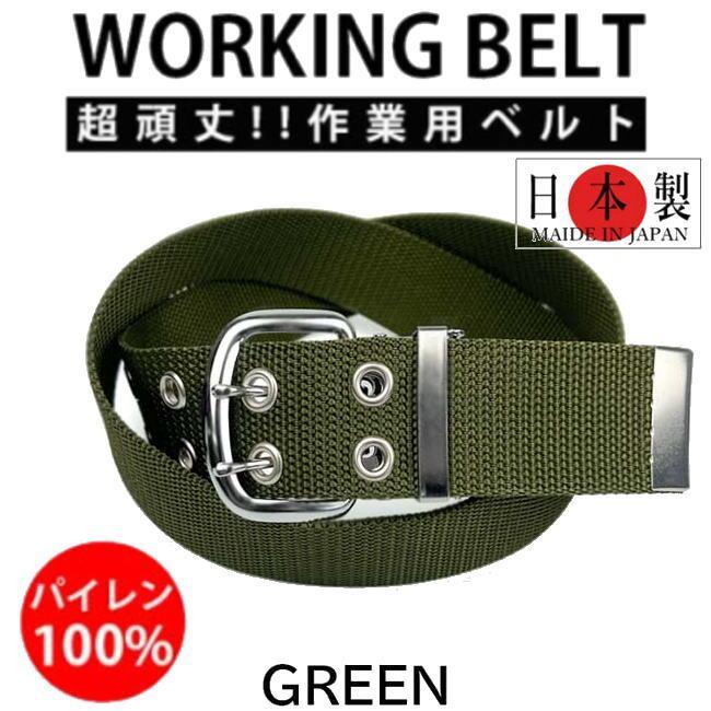 グリーン 日本製 作業ベルト ダブルピン 超頑丈 ワークベルト