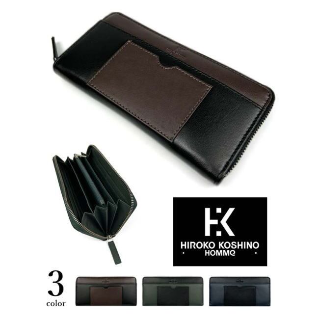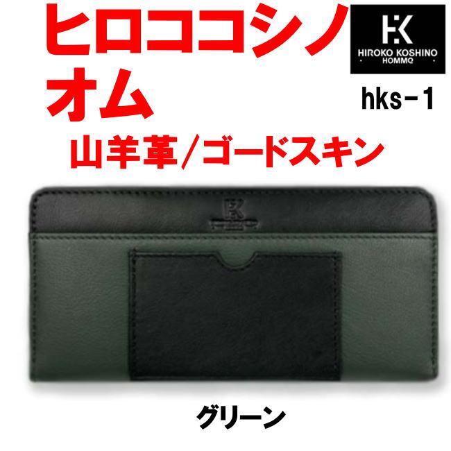 グリーン hks-1 ヒロコ コシノ オム 山羊革 ゴードスキン ラウンド 長財布