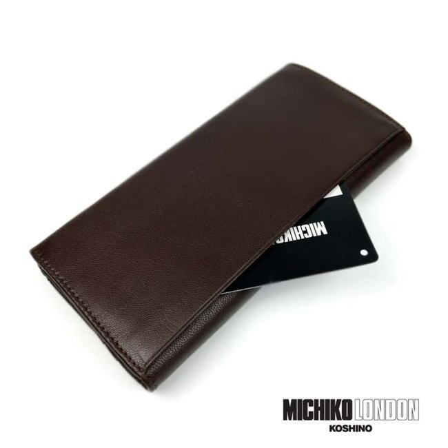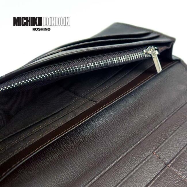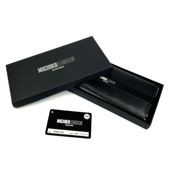 ブラック 0148 ミチコロンドン 山羊革 スリム 長財布 ロングウォレット