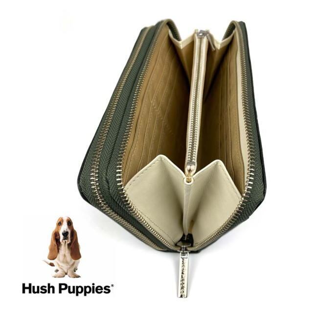 ブルー ハッシュパピー 持ち手付 ラウンド 財布 牛革 長財布 66