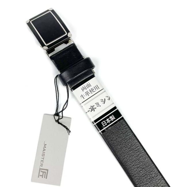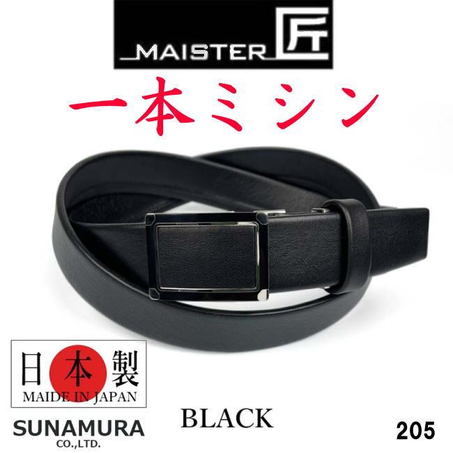 ブラック MAISTER匠 日本製 高級カウレザー 穴なしベルト 1本ミシン 205
