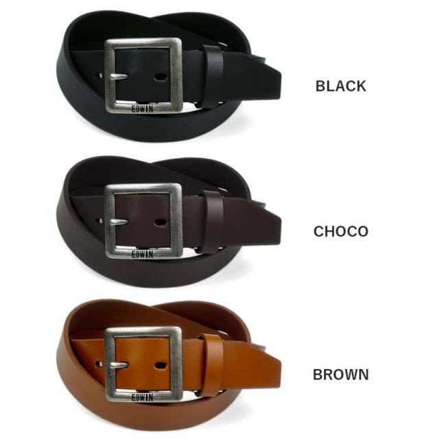 チョコ EDWIN エドウイン リアルレザー ギャリソンバックル ベルト ニッケルフリー 0111178