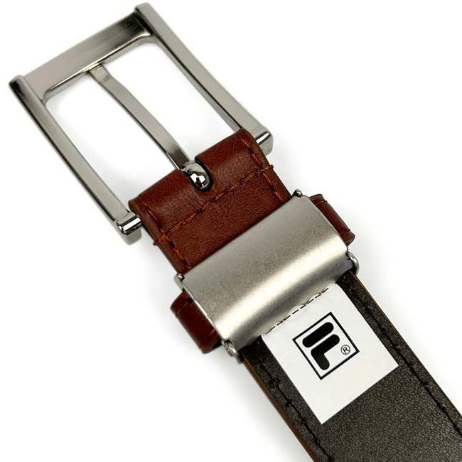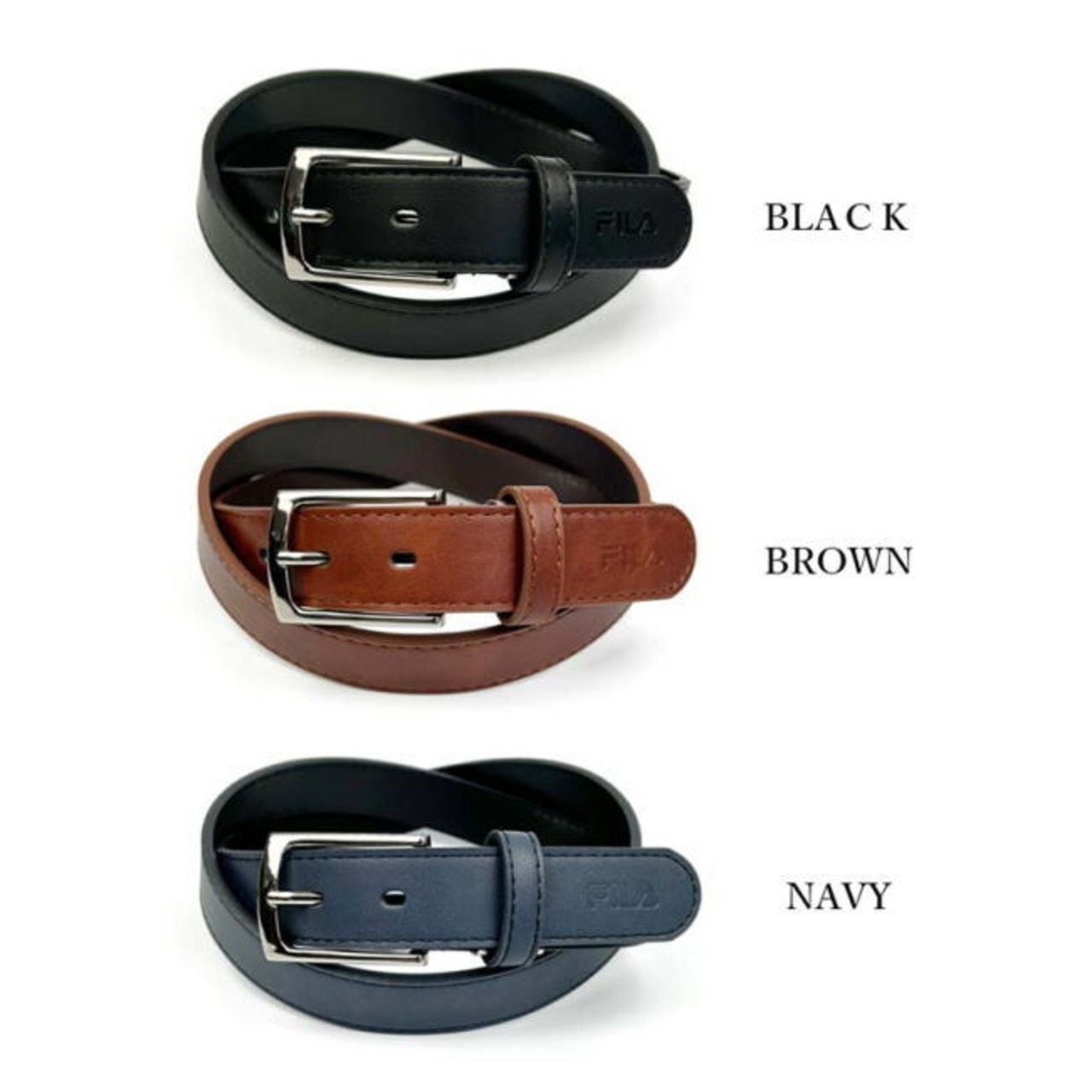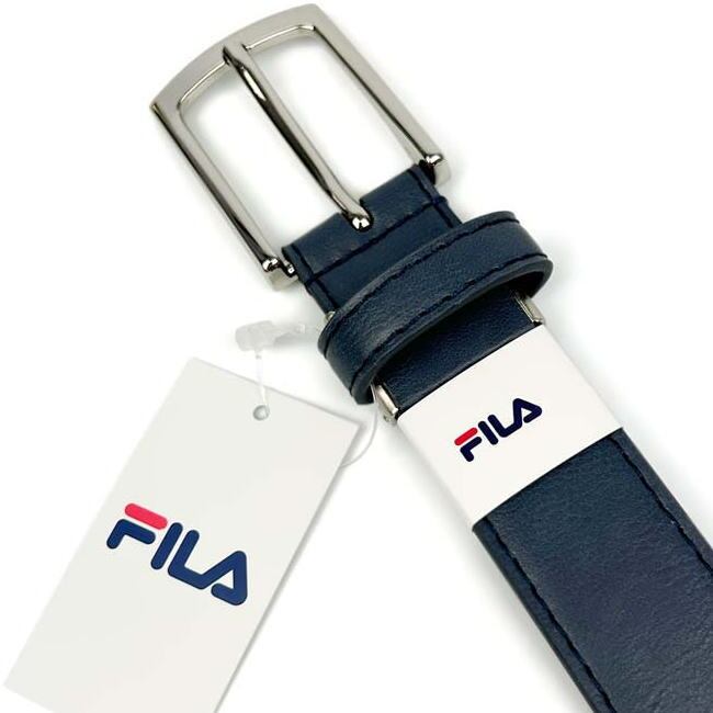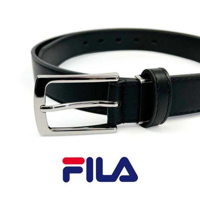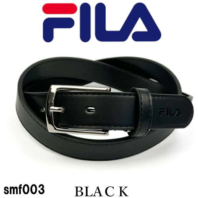 ブラック 003フィラ FILA ロゴ型押し ベルト ピンバックル 2.8cm 長め