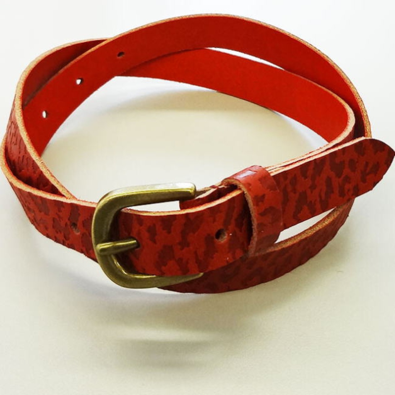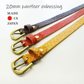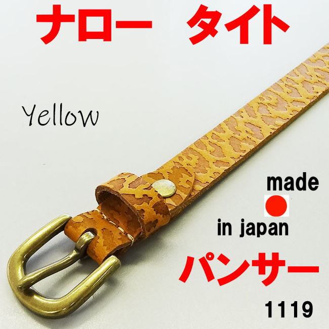 イエロー 20mm ナロー タイト ベルト 1119 パンサー柄 エンボス 牛革 日本製 メンズ レディース