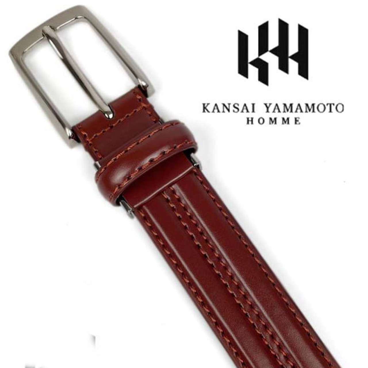 ブラウン 茶 khbp9 ヤマモト カンサイ オム 4連ステッチ ベルト ビジネス