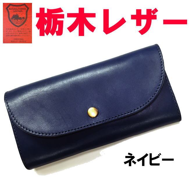 ネイビー 紺 栃木レザー 長財布 60438 フラップ 日本製 ユニセックス