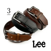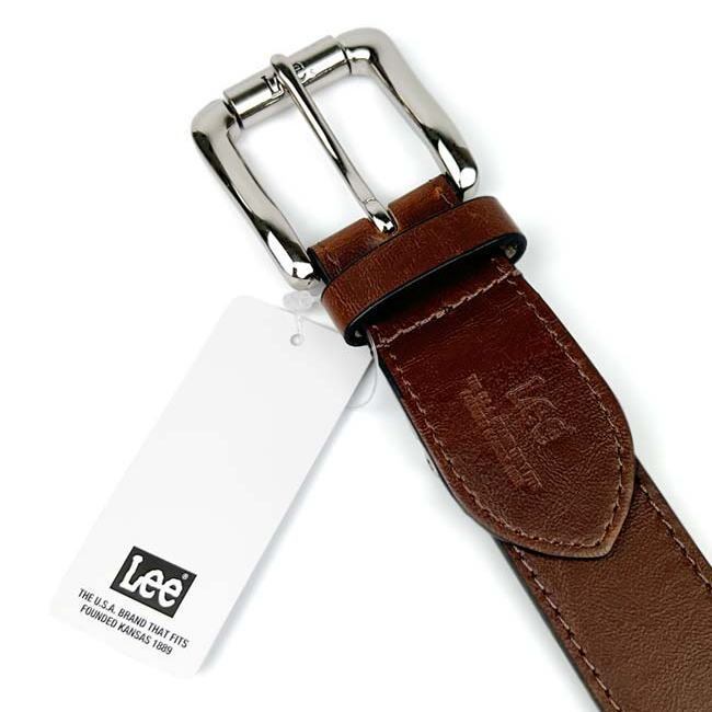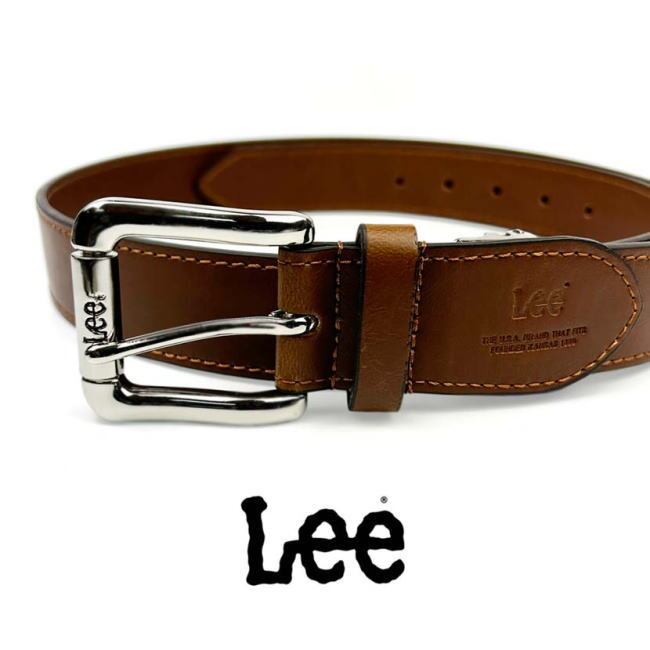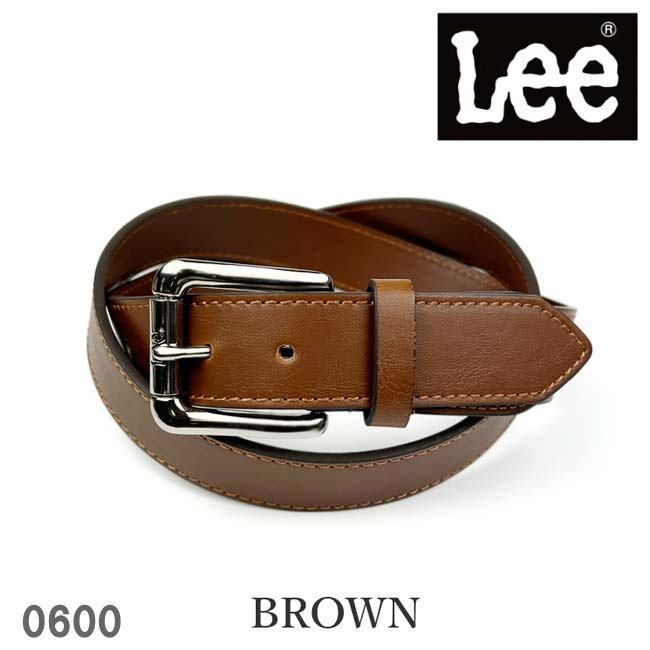 ブラウン Lee リー PUレザー ローラーバックル ベルト 3.5cm 合成皮革 0120600